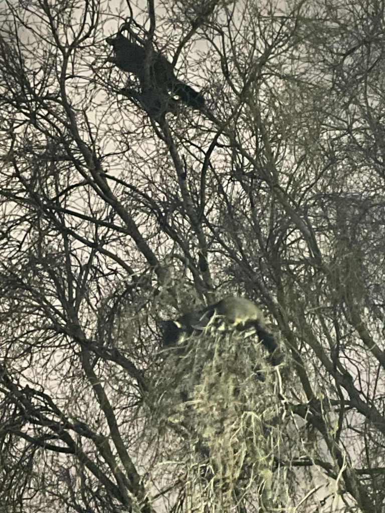 Cestou zpátky jsme viděli vačice (?) (už bylo šero, tak fotka nic moc není). Kdo by tušil, že lezou po stromech?