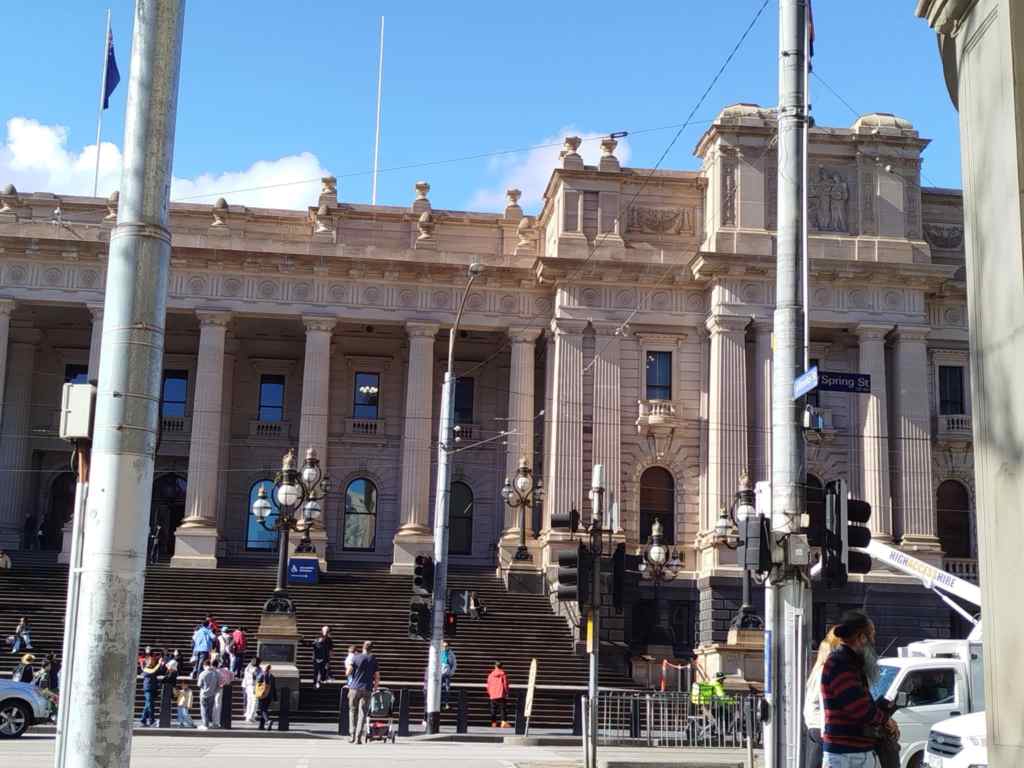 Trochu jsme se po cestě ztratili – nějak jsme dosáhli k budově Australského parlamentu (na obrázku níž), když jsme chtěli jít do nákupáku několik bloků mimo, ale alespoň z toho mám fotku a procházku.