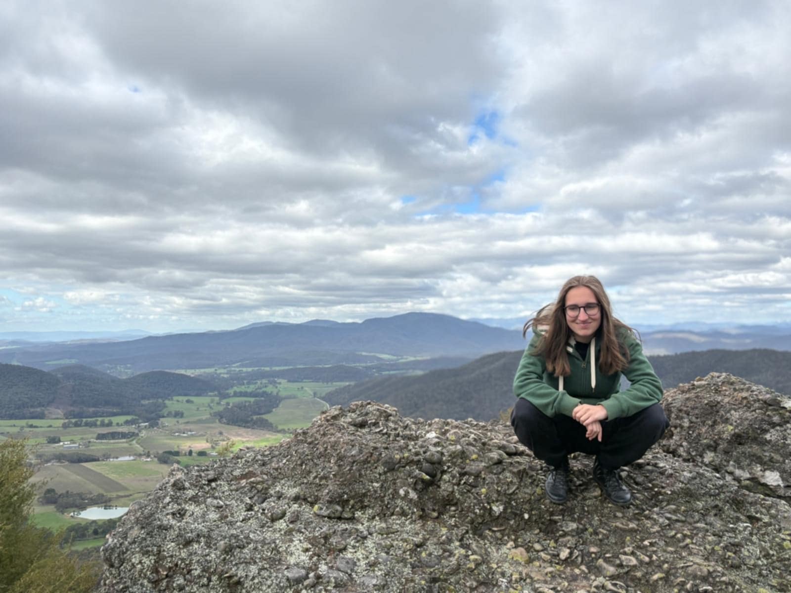 Další fotka strany hory ft. zajímavé graffiti. Na fotce poté můžeme pozorovat divokého host otce v přirozeném habitatu, dramaticky pózujícího u vyhlídky. Poznamenejte výbornou schopnost kamufláže.