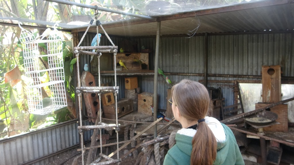 Také jsme zajeli k rodičům host taťky, protože žijí ve stejné vesnici. Mají malou voliéru s různými papoušky.