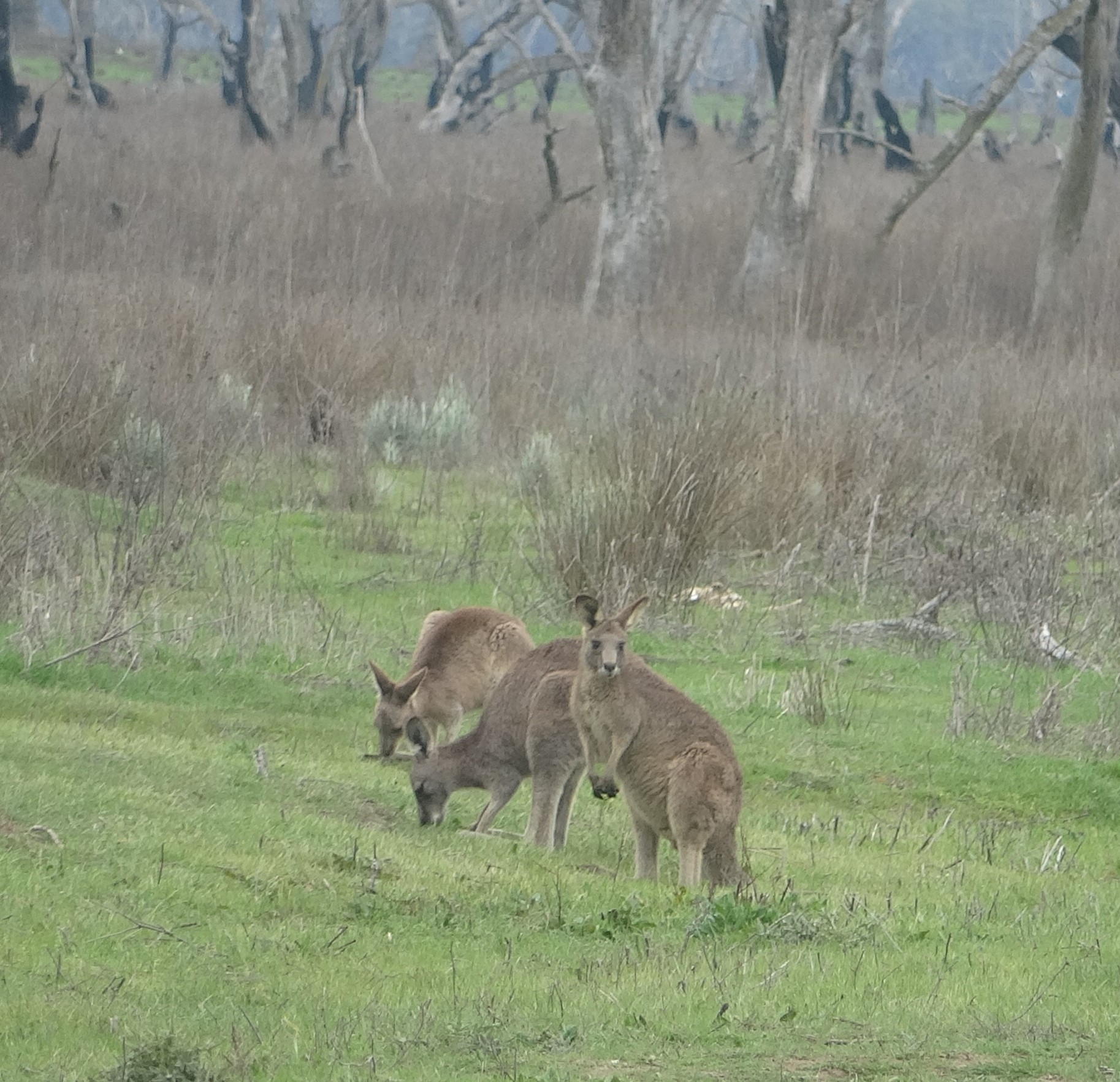 Cestou domů jsme zajeli do Winton Wetlands. Počasí nic moc, ale viděli jsme divoké klokany:
