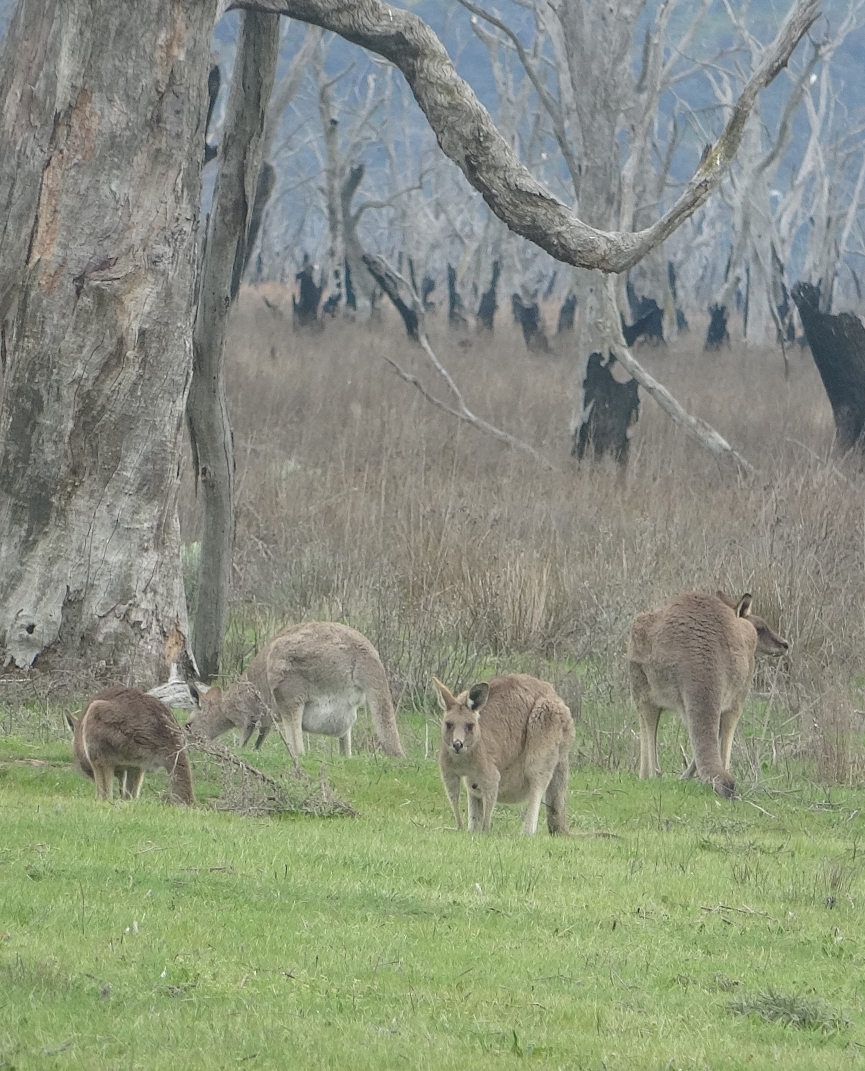 Resp. viděli jsme hodně klokanů. Předtím jsem si říkala, jak si dokáže Austrálie udržet stálou populaci klokanů když jich tolik srazí na silnici, ale v Winton wetlands jich bylo tak šílené množství, že se už nedivím. Měli tam i pár mrtvých klokanů: